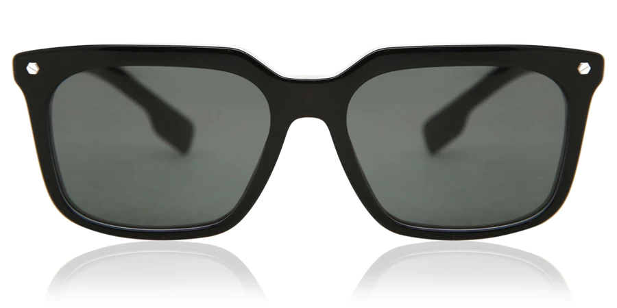 Burberry Sunglasses. Series Carnaby. Series number: BE4337. Color code: 379887. Shape: Square. Lens Width: 56 mm. Lens Bridge: 17 mm. Arm Length: 145 mm. 100% UV protection. Non-Polarized. Frame Material: Plastic. Frame Color: Black. Lenses Type: Dark Gray. Rim Style: Full-Rim. UPC/EAN code: 8056597419161. Burberry Carnaby Dark Gray Square Men’s Sunglasses BE4337 379887 56.